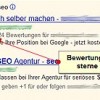 Google bietet seit einiger Zeit in bezahlten Werbeanzeigen in der direkten Google Suche die Sterne für getätigte Bewertungen der Kunden für verschiedene Platformen an. Die Sterne in den Anzeigen erscheinen bei mindestens 30 Bewertungen im Jahr und einem Bewertungsdurchschnitt von mindestens 4 Sternen.